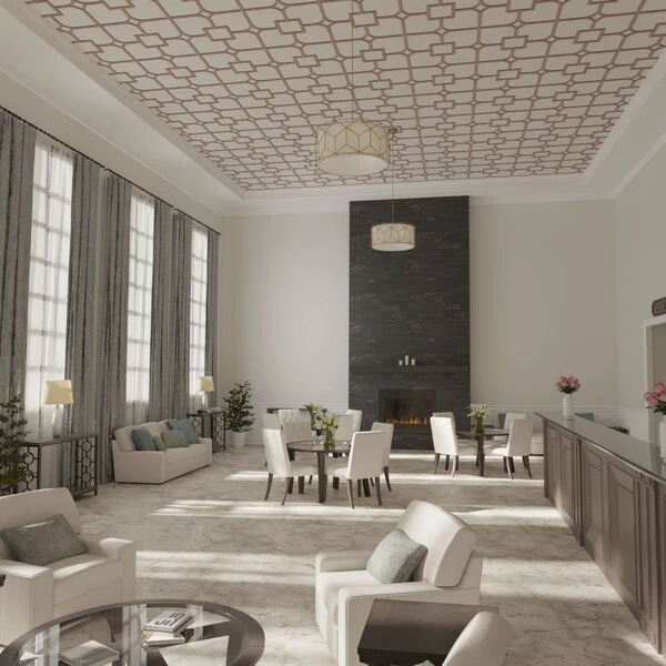 66 56W X 66 56H X 14T Large Laird Decorative Fretwork Wood Ceiling Panels, Wood Paint Grade