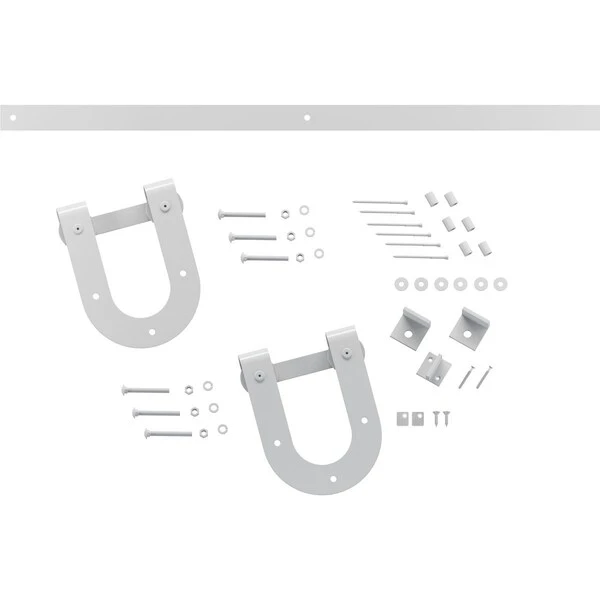 - Includes: 2 Standard Series J-horseshoe hangers, 2 track stops, 2 anti-jump blocks, floor T-guide and all necessary bolts, screws, spacers, etc. for one door.