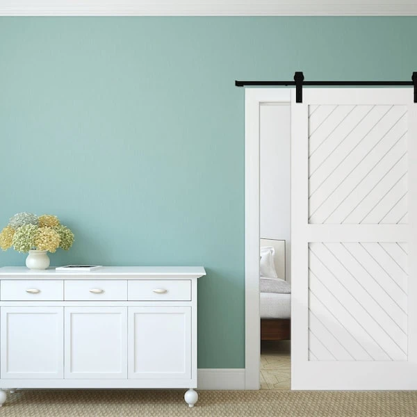 - Includes: 2 Standard Series J-strap hangers, 2 track stops, 2 anti-jump blocks, floor T-guide and all necessary bolts, screws, spacers, etc. for one door.