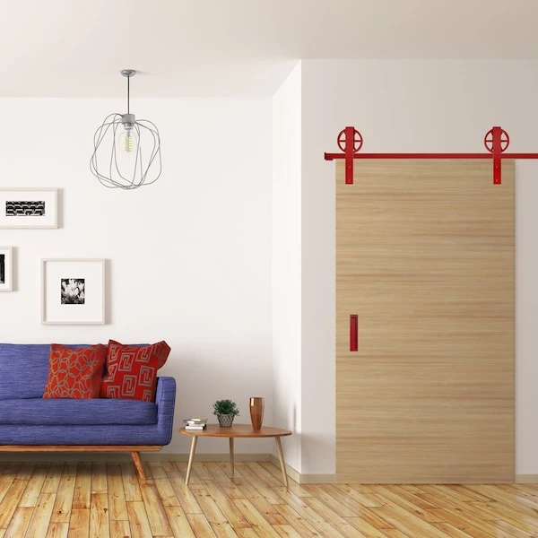 - Set includes: 2 wagon wheel hangers, 2 track stops, 2 anti-jump blocks, floor T-guide, all necessary bolts, screws, washers, nuts, etc. for one door.